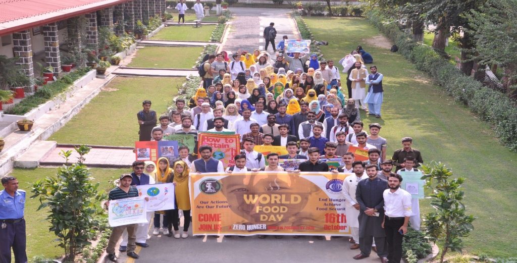 World Food Day was celebrated on 16th October 2019 by Biotech society of Biotechnology Department at COMSATS University Islamabad Abbottabad Campus on account of World food day. Chairman Prof. Dr. Maroof Shah and Head of Biotechnology Department Dr. Amjad Hassan emphasized on global world food problem and the role Biotechnology students can play to elevate hunger and malnutrition. Students made posters to highlight world food issues.