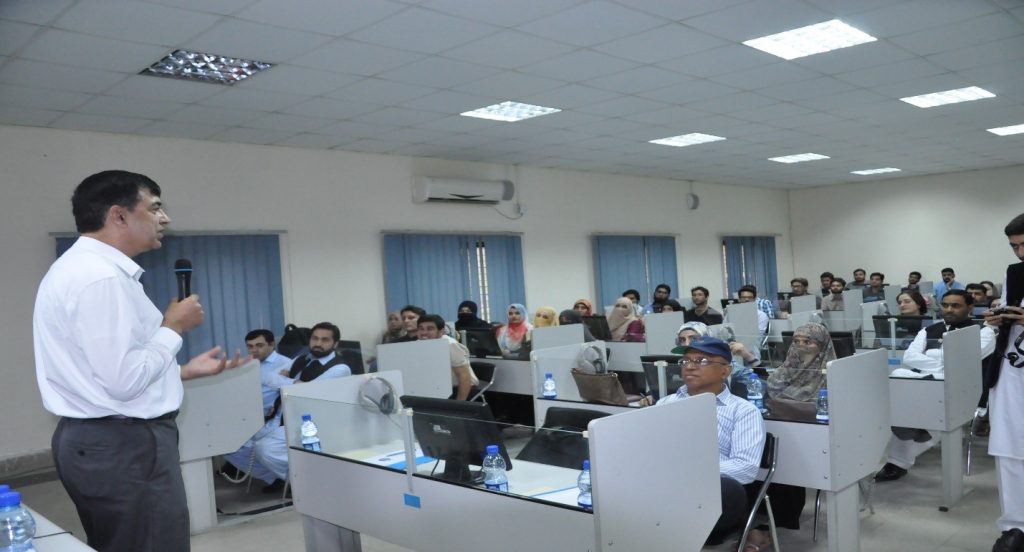 Dr. Saghir Abbass briefed the students about Short and Long Term Fully Funded Scholarships, like Fulbright Scholarship (USA), SUSI (Study of the U.S. Institutes), Erasmus Mundus Joint Master Degrees (EU), DAAD (Germany), MEXT (Japan), CSC (China Scholarship Council), Chevening (UK), Turkiye Burslari (Turkey), Swedish Institute Scholarships (Sweden), requirements of these scholarships, and also the Research-Based Exchange Programs like DAAD RISE – Germany, MITACS Globalink – Canada, Amgen Scholars Program – USA & EU, CALTECH SURF – USA, RISE Worldwide – Germany