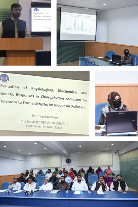 Miss Hifza Imtiaz successfully defended her PhD thesis entitled “Evaluation of Physiological, Biochemical and Genetic Responses in Chlorophytum comosum for Tolerance to Formaldehyde: An Indoor Air Pollutant” on 25th Sep, 2025 in library conference room. The defense was attended by the faculty and student aliong with the panel of examiners. Her work was supervised by Dr. Yasar Sajad who is an expert in agriculture biotechnology domain.