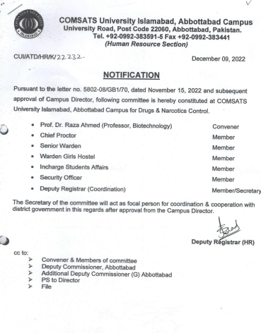 | Prof Dr. Raza Ahmed. (HoD)Department of Biotechnology | Convener